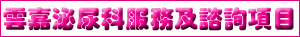 雲嘉泌尿科擁有多位學有專精的主治醫師,可為病患提供泌尿系統各方面的服務,其服務及諮詢項目包括: